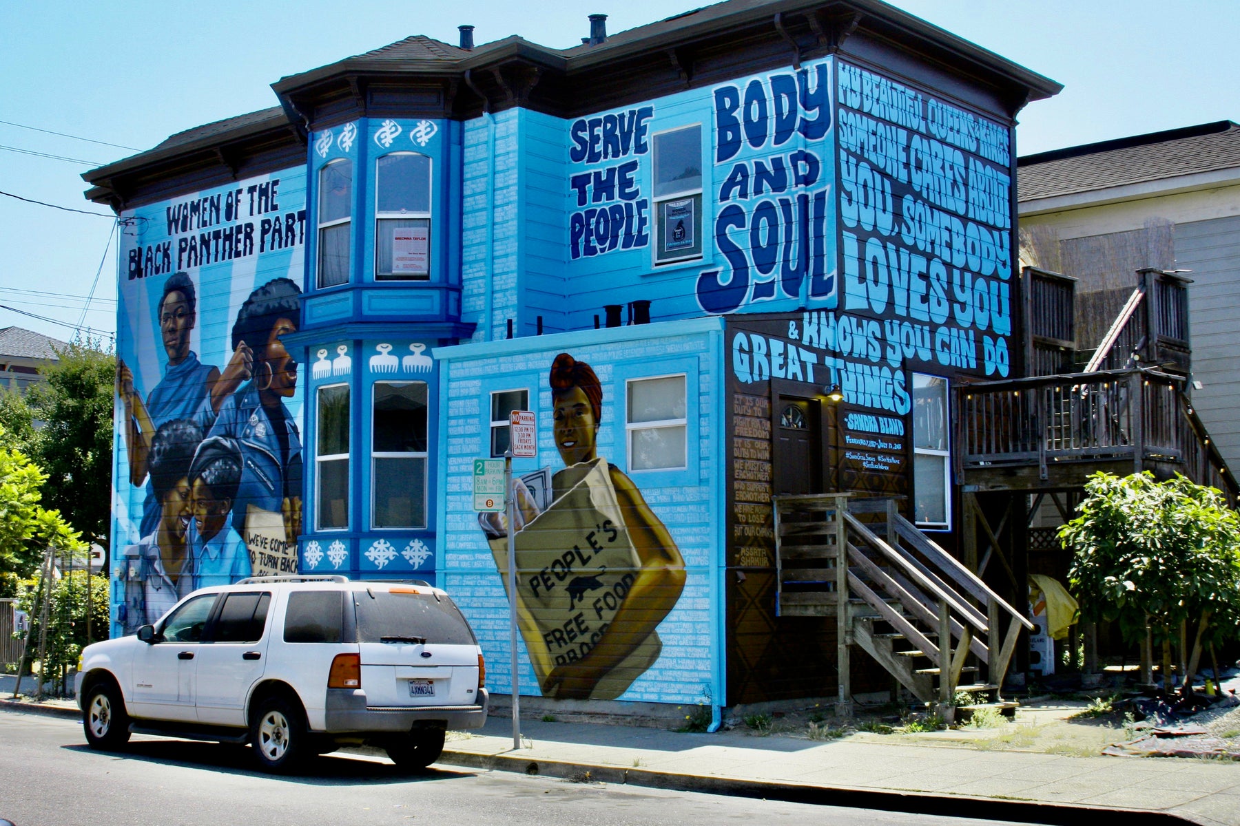 West Oakland Mural Project is: The Women of The Black Panther Party Mural and Museum. The Mural is a 2000-square-foot public art masterpiece, installed on a private home in the heart of West Oakland, CA. Painted by Rachel Wolfe-Goldsmith and envisioned and curated by long time Oaklander Jilchristina Vest, this mural recognizes and honors the role of the Panther Women and the over 65 Community Survival Programs they created and managed.